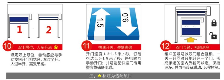 ⑩雙上限位,人車分流* ?快速開關,便捷高效 ?雙門互鎖,密閉潔凈